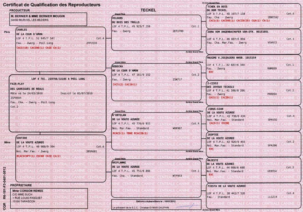 | Couleur | nain poil long fauve charbonné |