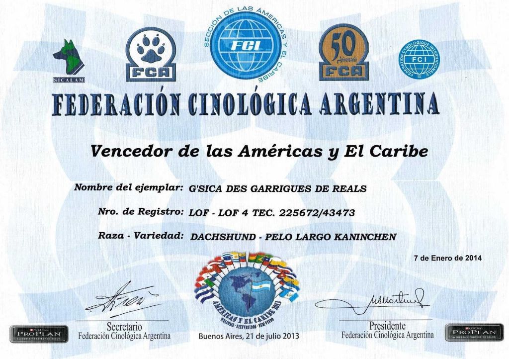 Palmares de CH. G'sica des Garrigues de Réals