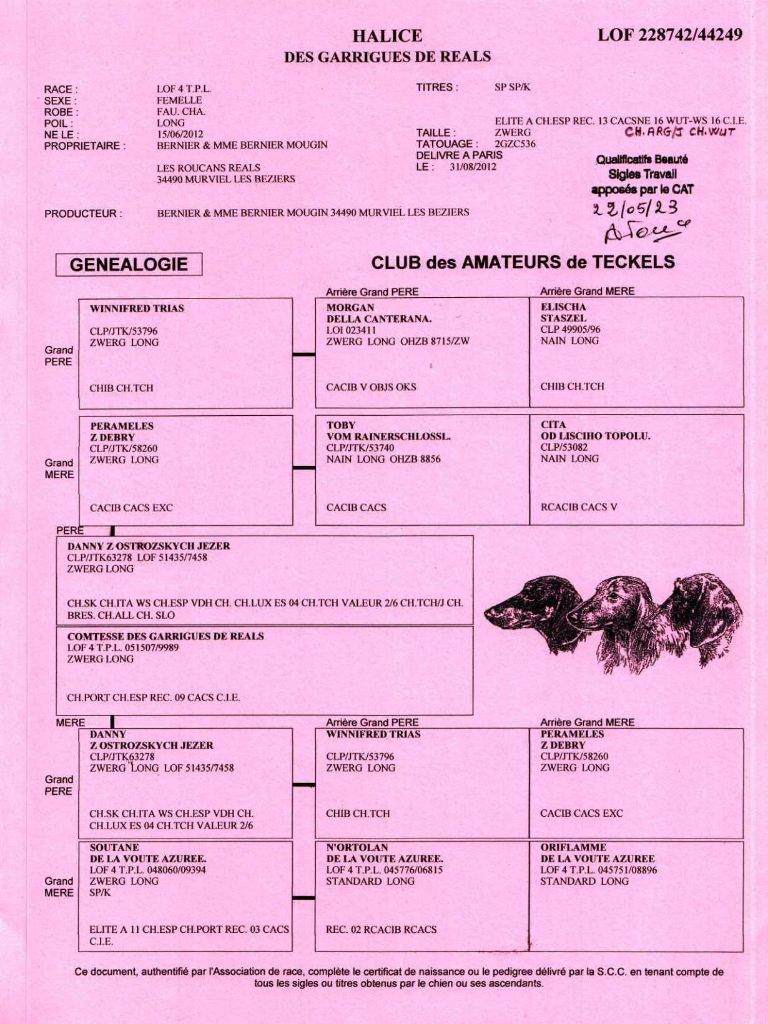 ADN 2016 : identification génétique Dention 2013 : DCC conforme et complète MHOC 2013+2023 : indemne APR-CAT |