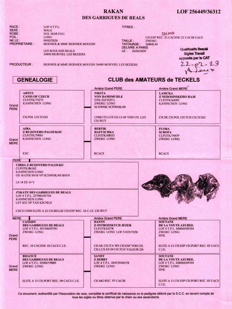 ADN+Filiation 2021 : DNA Compatible Dentition 2021 : DCC conforme et complète MHOC 2021 : indemne APR-CAT |