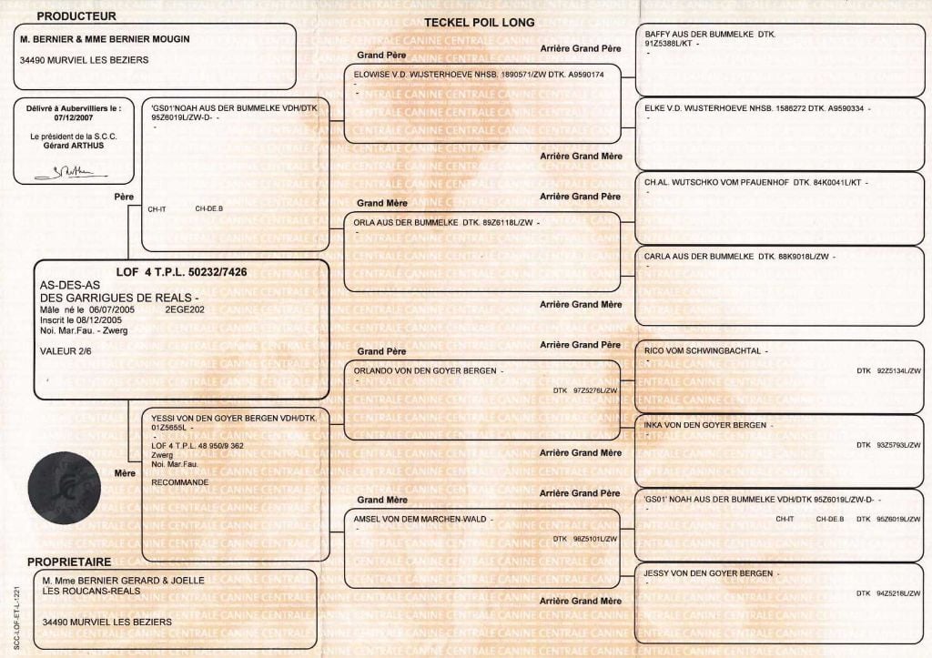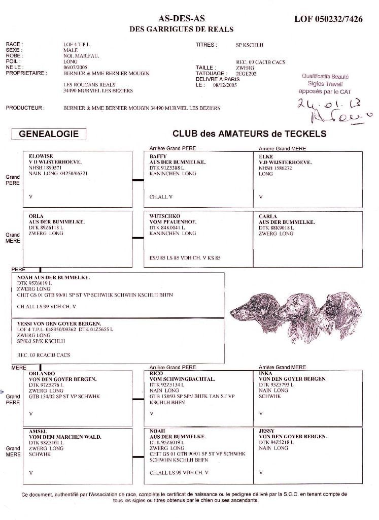 ADN 2016 : identification génétique Dention 2009 : DCC conforme et complète MHOC 2012 : indemne APR-CAT |