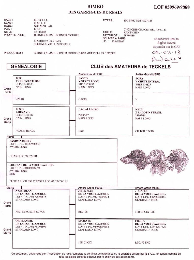 ADN+Filiation 2010 : Identification génétique + parenté (DNAComp) APR CORD1 2014 : normal (+/+) Dentition 2009 : conforme non complète (-1PM1) MHOC 2009 : indemne APR-CAT |